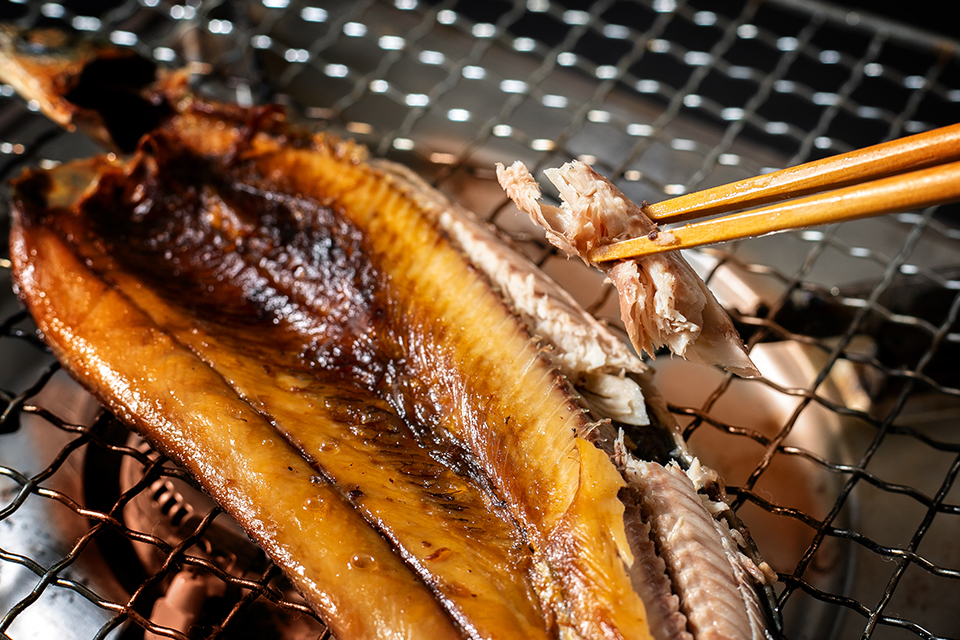 みりん千しや缶詰と違って、ショウマル自慢の逸品商品がコレ!皮目を焦がすほどシッカリ焼くと旨味となる魚脂が溶け出して、ジュワッと舌旨を喜ばせてくれる焼いて旨い錆。中骨を取った有頭半身でお届け。